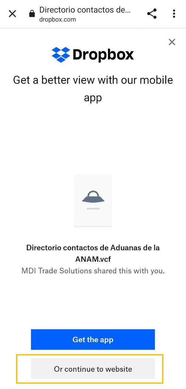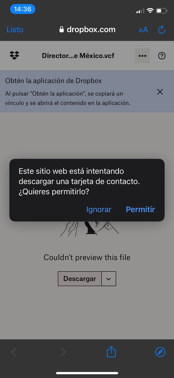 1. Te redireccionará a un sitio web de nuestro Dropbox