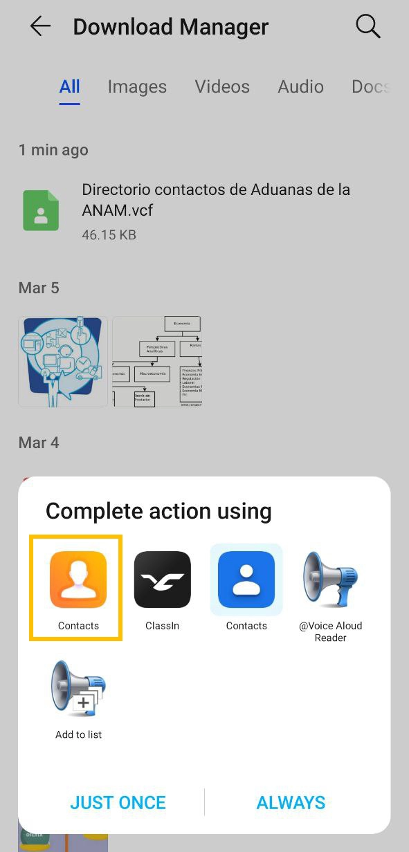 10. Listo finalmente podrás descargar todos los contactos en tu directorio de teléfono.