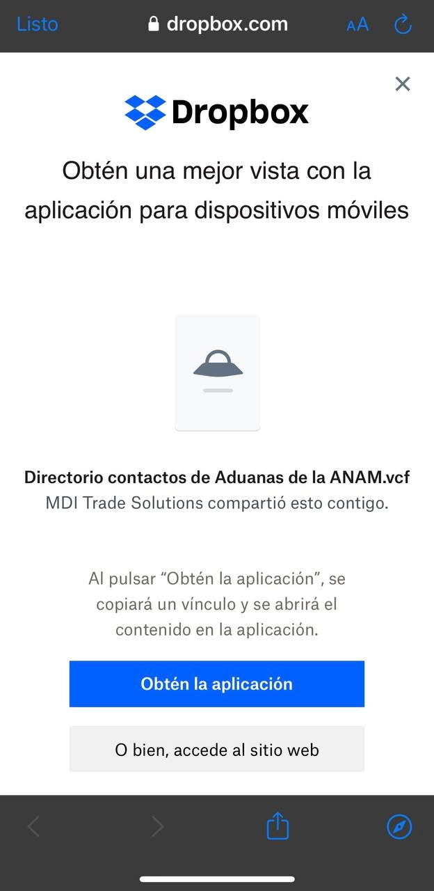2. Te redireccionará a un sitio web de nuestro Dropbox